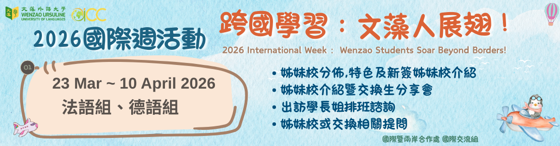 2026 國際週「跨國學習:文藻人展翅!」